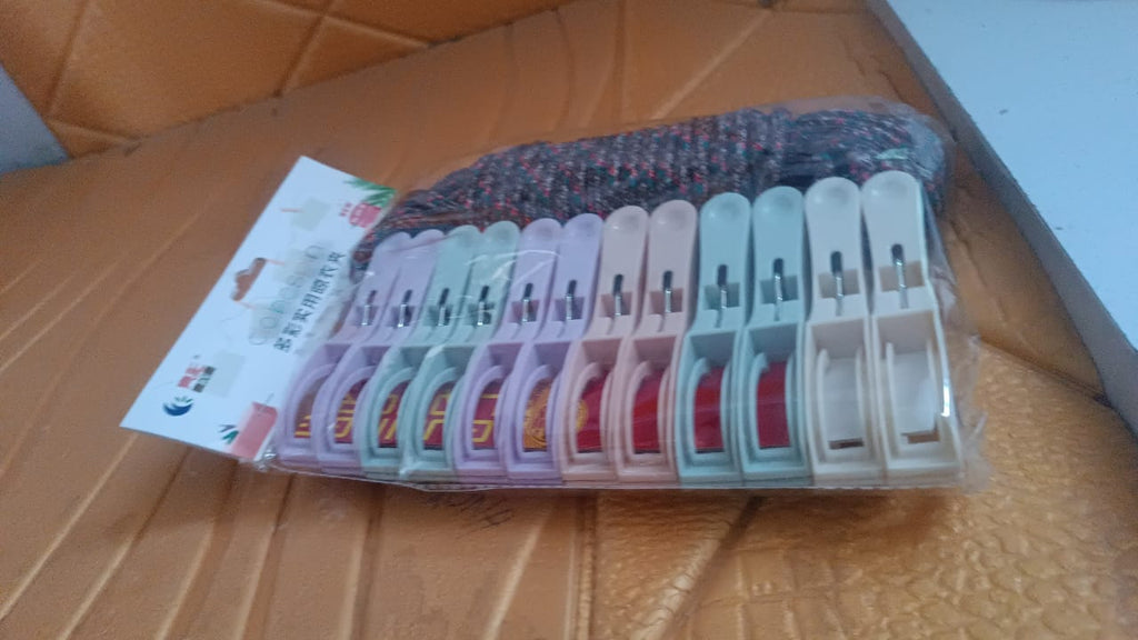 Cloth Drying Rope with Clips – Convenient and Durable Hanging Solution (12 Pc)