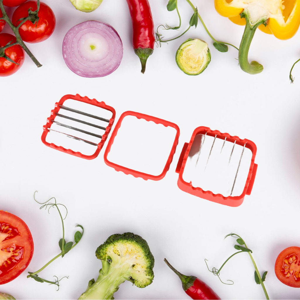 8191 Multifunction Vegetable Cutter Manual Vegetable Quick Dicer Fruit Chopper Slicer with 3 Interchangeable Stainless Steel Blade Inserts, Non-Skid Base Slicer and Chopper